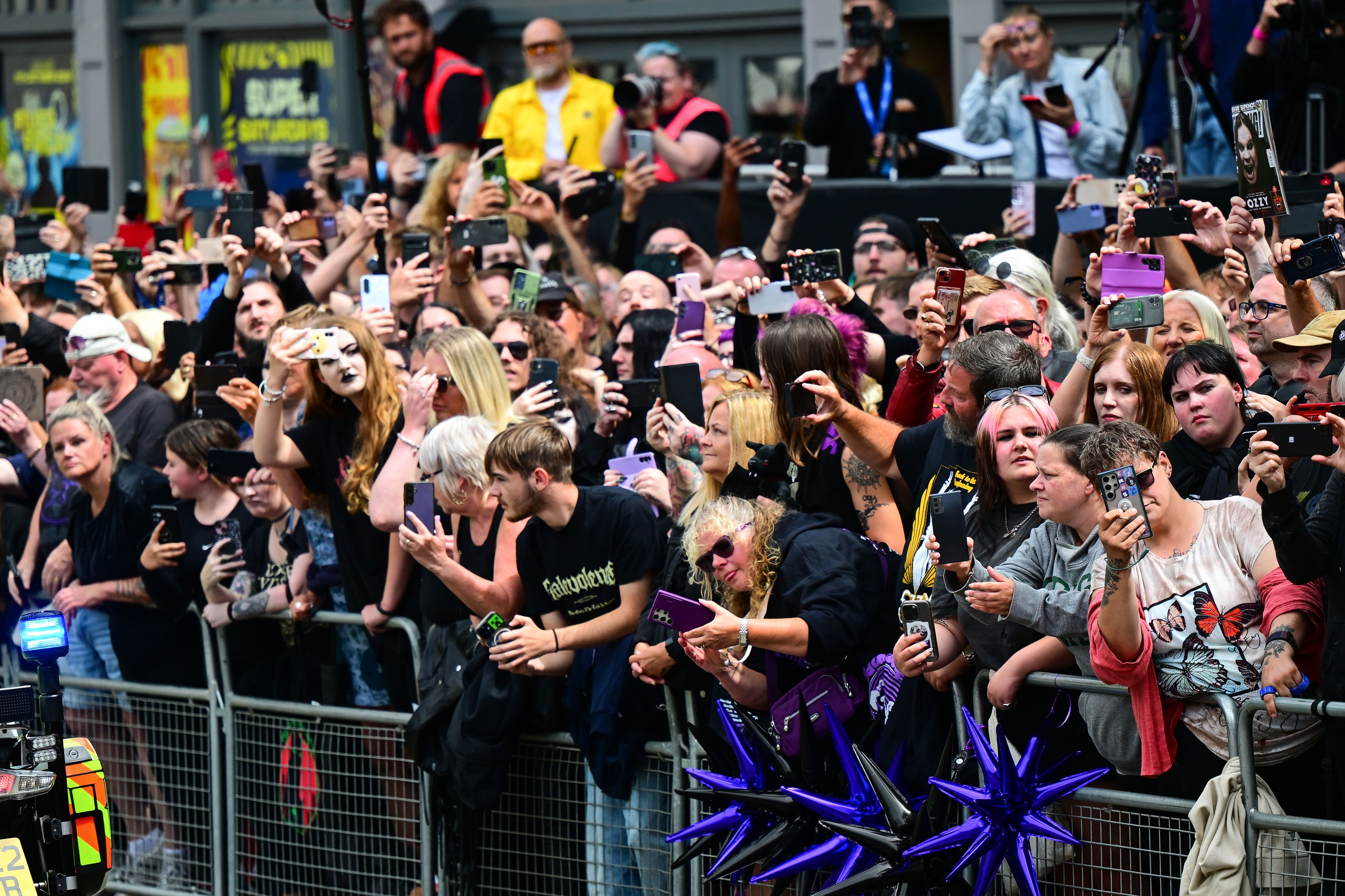 As Ozzy’s hearse passed – adorned with purple flowers including a wreath spelling out the Grammy winner’s name – fans were also heard chanting: “Ozzy, Ozzy, Ozzy, oi, oi, oi.”
