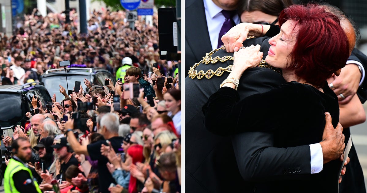 In addition to the hundreds upon hundreds of fans who lined the streets as part of his funeral procession, the late rocker’s wife, Sharon Osbourne, and their three children, Aimee, Kelly and Jack, were also pictured Birmingham.