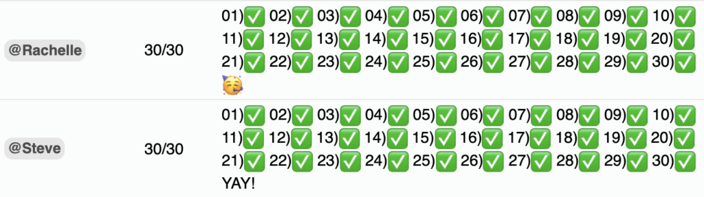 Really I think we shouldn’t even have ❌’s as part of the challenges. We should use a skull and crossbones ☠️ emoji instead to drive home the point that if you miss a day, you failed the challenge, and now you’re wallowing in freakish misery forever.