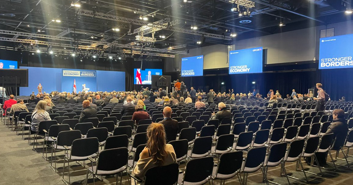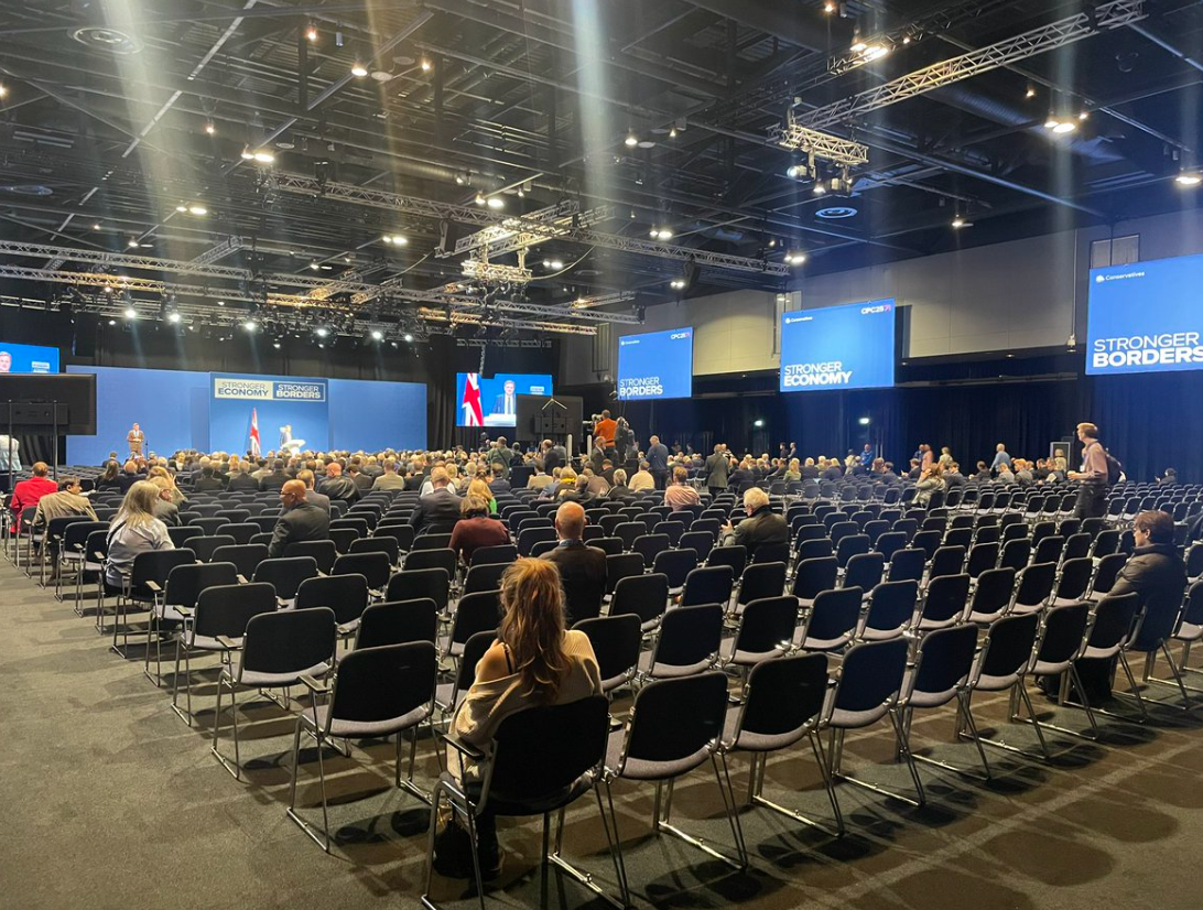 Sky News’ Amanda Akass noted that it was “not exactly a packed hall” for the shadow chancellor Mel Stride’s speech today – and attached a photo of a room which appeared to be about two-thirds empty.